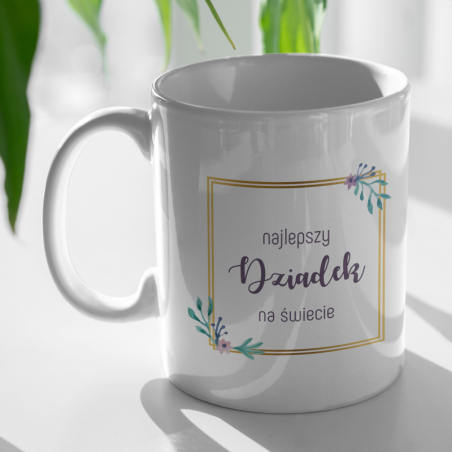 Biały kubek ceramiczny, "Kubek Najlepszy Dziadek na świecie".